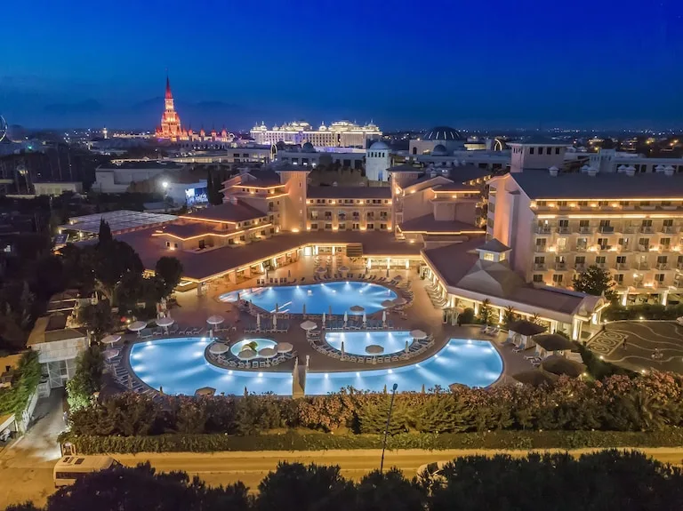 Innvista Hotels Belek — это роскошный курорт, который предлагает своим гостям комфортные номера и первоклассные услуги. Вы сможете насладиться великолепными видами на море, а также расслабиться в спа-салоне и на пляже. В отеле предусмотрены различные удобства, такие как бассейны, рестораны и спортивные площадки, что делает его идеальным местом для семейного отдыха.